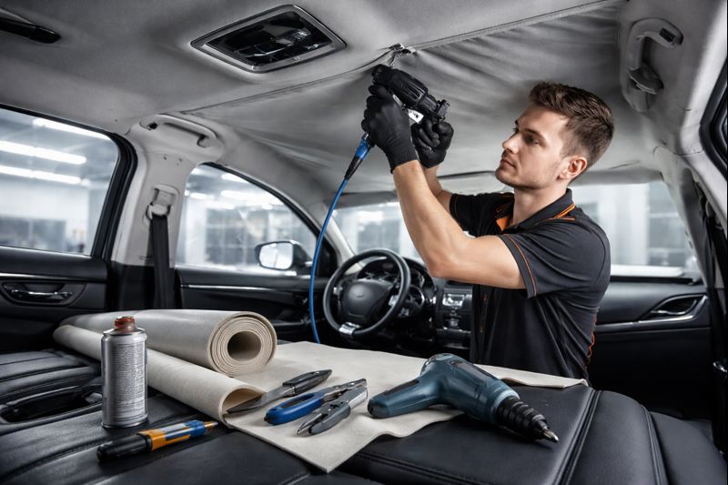 Lorsque l’intérieur du véhicule se dégrade, nous assurons la rénovation de ciels de toit décollés ou abîmés afin de retrouver un habitacle propre et soigné, ainsi que la création de ciel de toit étoilé par fibre optique.